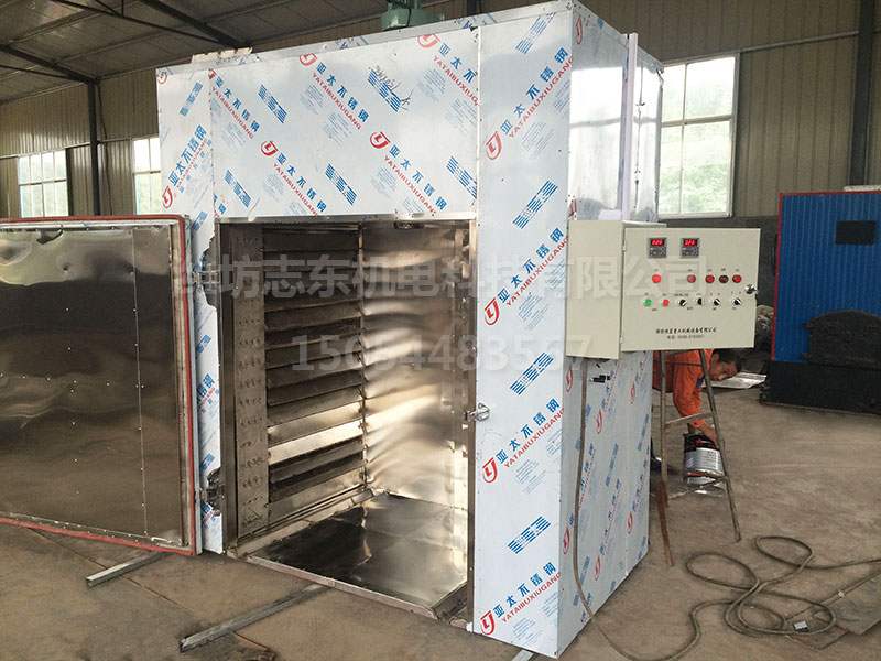 食品(牛肉干、豬肉干等)烘干設(shè)備采用耐高溫循環(huán)風(fēng)機,通過電熱管或蒸汽換熱器加熱的強制熱風(fēng)在箱內(nèi)進(jìn)行循環(huán),增強了熱量的傳遞,提高了水分蒸發(fā)速率,縮短了干燥時間。整個箱體采用全封閉結(jié)構(gòu),熱空氣在箱內(nèi)循環(huán),合理排出濕熱空氣和補進(jìn)新鮮空氣。
